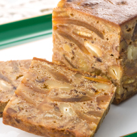 | [原材料] | 柑橘系ピール,三温糖,卵,国産小麦粉,無塩バター,くるみ,カシューナッツ,プルーン,ラム酒,レモン,アーモンドプードル,ミックススパイス(シナモン,ナツメグ,グローブ),塩 |