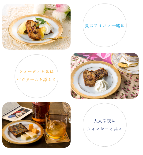 また、ケーキをカットする際は、ナイフで薄く切ってお召し上がり下さい。沢山のドライフルーツが入っているため、うまく切れない場合は少し冷凍庫で冷やしてから切って頂くと綺麗にカットできます。